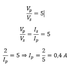 Bir transformatörün primer gerilimi 240 V sekonder akımı 2 A olarak verilmektedir. Primer ve sekonder gerilimleri arasındaki oran 5’tir. Buna göre primer akımın değeri kaç amper’dir?