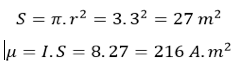 I=8A akım taşıyan ve yarıçapı r=3m olan bir çember telin oluşturacağı dairesel akım ilmeğinin dipol momentinin değeri kaç A.m2’dir?(π=3)