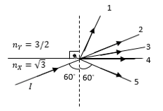Kırılma indisi olan saydam X ortamından, kırılma indisi 3/2 olan saydam Y ortamına I ışını 60◦’lik açı ile gönderiliyor. buna göre I ışını şekildeki yollardan hangisini izler? (sin 60◦=