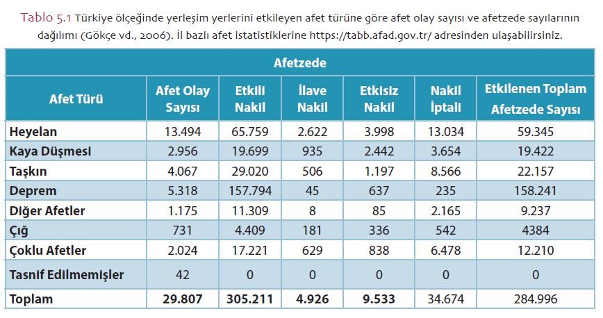 Tabloda Deprem'den etkilenen toplam afetzede sayısı en fazladır. (158.241 kişi)