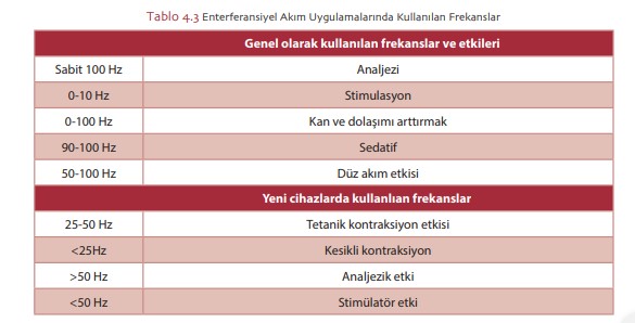 Aşağıda verilen enterferansiyel akım uygulamalarında kullanılan frekanslar ve etkilerinin eşleşmelerinden hangisi doğrudur?