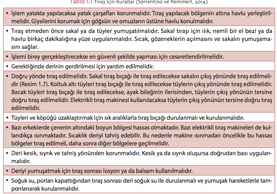 - Elektrikli tıraş makinesi kullanılacaksa tüylerin çıkış yönünün tersine doğru tıraş edilmeli