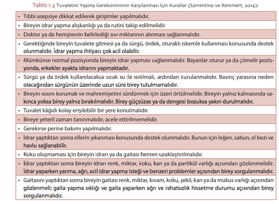 Aşağıda verilen "Tuvaletini yapma gereksiminin karşılanması için uyulması gereken kurallardan" hangisi/ hangileri doğrudur?