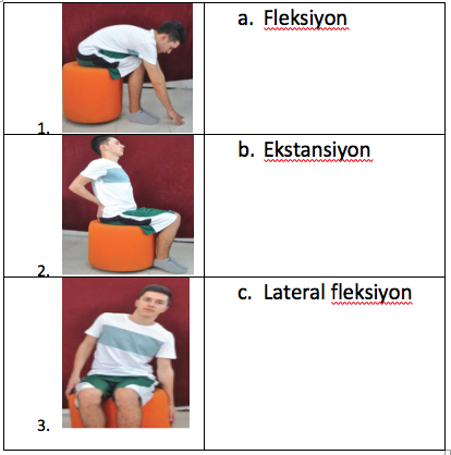 gövde yan hareketleri (lateral fleksiyon) için oturma pozisyonunda yapılan germe egzersizleri sırasıyla