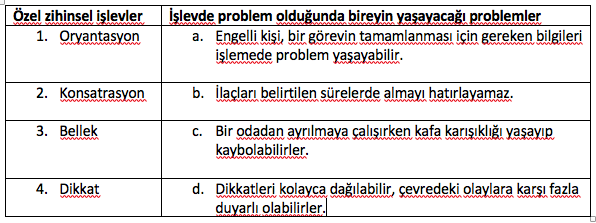 Yukarıda verilen işlevlerle, bu işlevde problem olursa yaşanabilecek problemlerin doğru olarak eşleşmesi hangi şıkta verilmiştir?