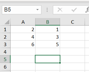 Microsoft Excel'de B5 hücresine =TOPLA(A1:B3 A3:B1) formülü ekleniyor. Bu durumda B5 hücresinin alacağı değer aşağıdakilerden hangisi olacaktır?