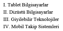 Yukarıdakilerden hangileri taşınabilir teknoloji türleri arasında yer alır?