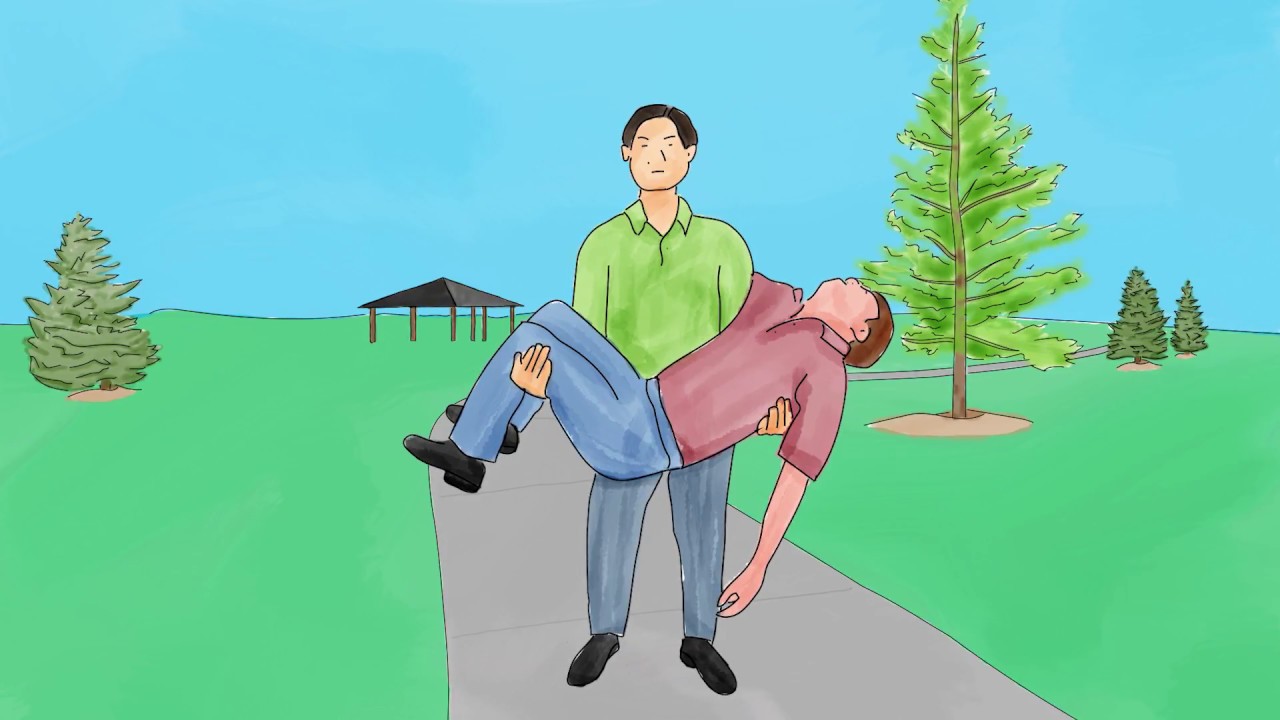 Taşıma için ilkyardımcı hastanın sağ ya da sol yanına geçerek yaralıyı oturur hâle getirir. Sağ kolunu yaralının bacakları altından geçirirken sol kolu ile yaralının sırtına destek verir. Sırttan destek vermek yaralının düşmesini engelleyecektir. Yaralıya ilkyardımcının boynuna sarılması söylenir. İlkyardımcı kalça ve dizlerini bükerek yaralıyı kaldırır.
