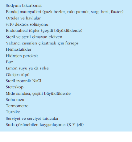Aşağıdakilerden hangileri ilk yardımda kullanılan malzeme ve ekipmanlardan değildir?