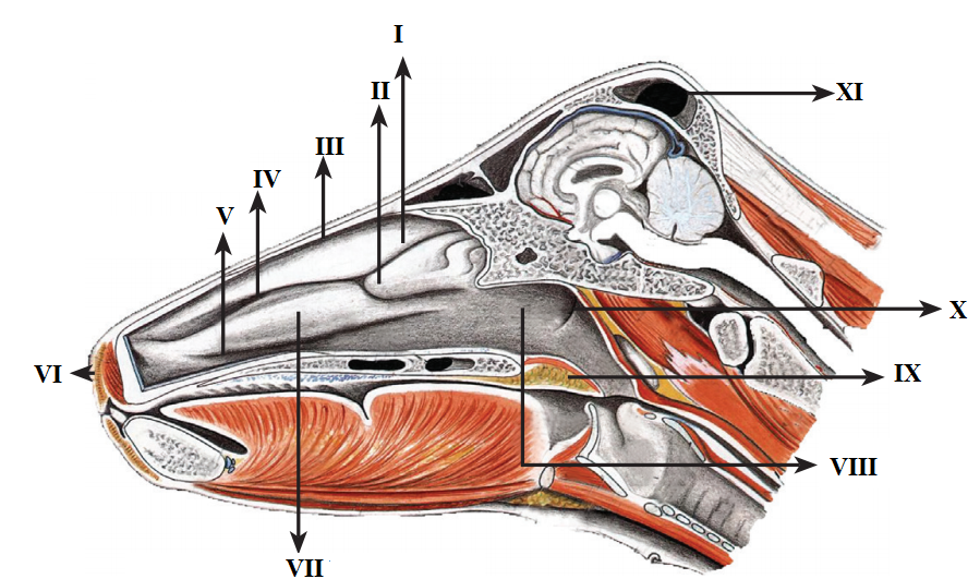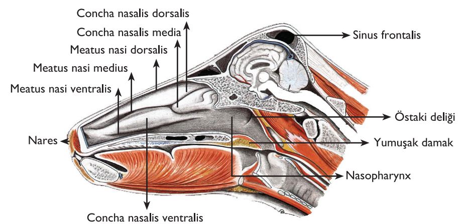 Yukarıda verilen sığır kafatası yan kesitinde VII numara ile gösterilen anatomik yapı aşağıdakilerden hangisinde doğru olarak verilmiştir?