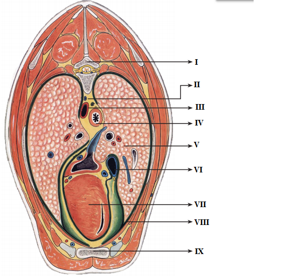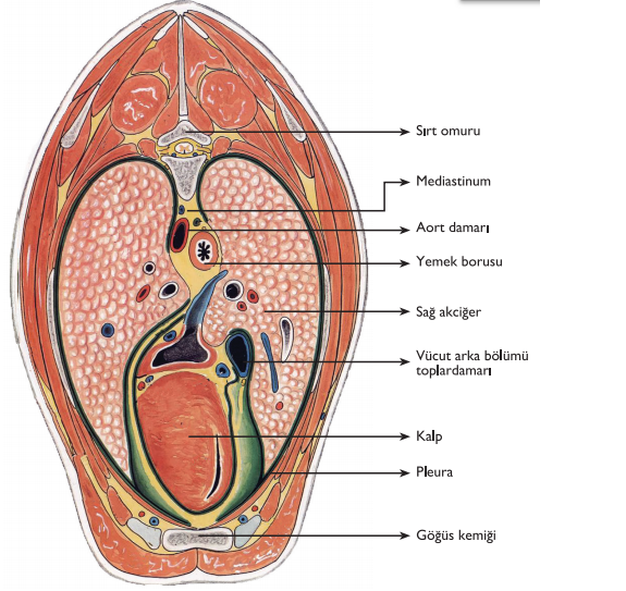 Yukarıda verilen sığırın göğüs boşluğunun caudal’den enine kesitindeki