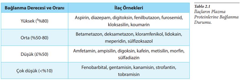 Kan dolaşımına giren ilaç moleküllerinin bir kısmı serbest, önemli bir kısmı plazma proteinlerine bağlı halde taşınırlar. |