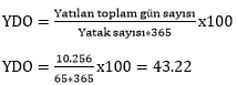 2014 yılı içinde Özel A hastanesi, yatan hastalara toplam 10.256 gün bakım hizmeti vermiştir. Hastanenin toplam yatak sayısı 65 olduğuna göre, 2014 yılı için yatak doluluk oranı kaçtır?
