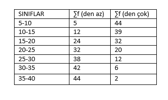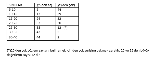 verilen birikimli frekans serisinde 25 ve 25'den çok gözlem sayısı kaçtır?