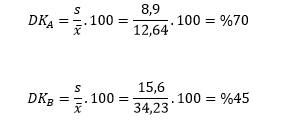 A ilacı tüketimi serisinin değişkenliği, B ilacı tüketimi serisinin değişkenliğinden büyüktür. |