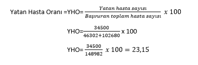 2012 yılı içerisinde A hastanesinde toplam yatan hasta sayısı 34500 'dür. Aynı yıl içerisnde hastanenin acil servisine 46 302 ve diğer servislere toplam 102 680 başvuru olduğuna göre hastanenin 2012 yılı yatan hasta oranı nedir?