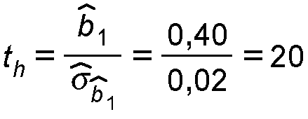 Bir çalışmada elde edilen regresyon doğrusu denkleminde eğim katsayısının kestiricisi 0,40 ve bu katsayı için standart hata kestiricisi 0,02 olarak hesaplanmıştır. Buna göre eğim katsayısının anlamlılık sınamasında hesaplanacak test istatistiği değeri kaçtır?