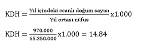 yılına ait yıl ortası nüfusu ise 65.350.000 göre bölgede kaba doğum hızı kaçtır?