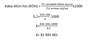 Türkiye'de 2018 kaba ölüm hızı dir. Yıl içindeki ölüm sayısı 426 106 olarak belirlenmiştir. Buna göre yıl ortası nüfus kaçtır?