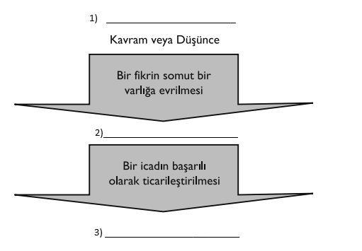 Şekilde belirtilen boşluklara 1'den 3'e doğru sırasıyla hangi ifadeler gelmelidir?