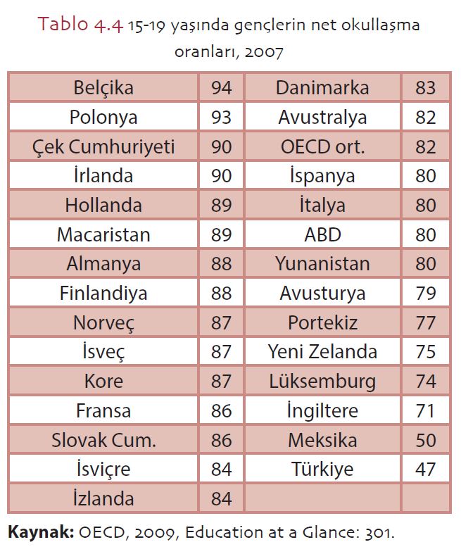 OECD ülkeleri arasında, 2007 yılı verilerine göre 15-19 yaşında gençlerin net okullaşma oranın en yüksek olduğu aşağıdakilerden hangisidir?