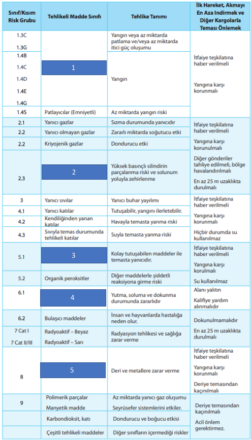 Yukarıdaki acil durum hareket tablosunda yer alan "oksitleyiciler" kaç numara ile gösterilmiştir?