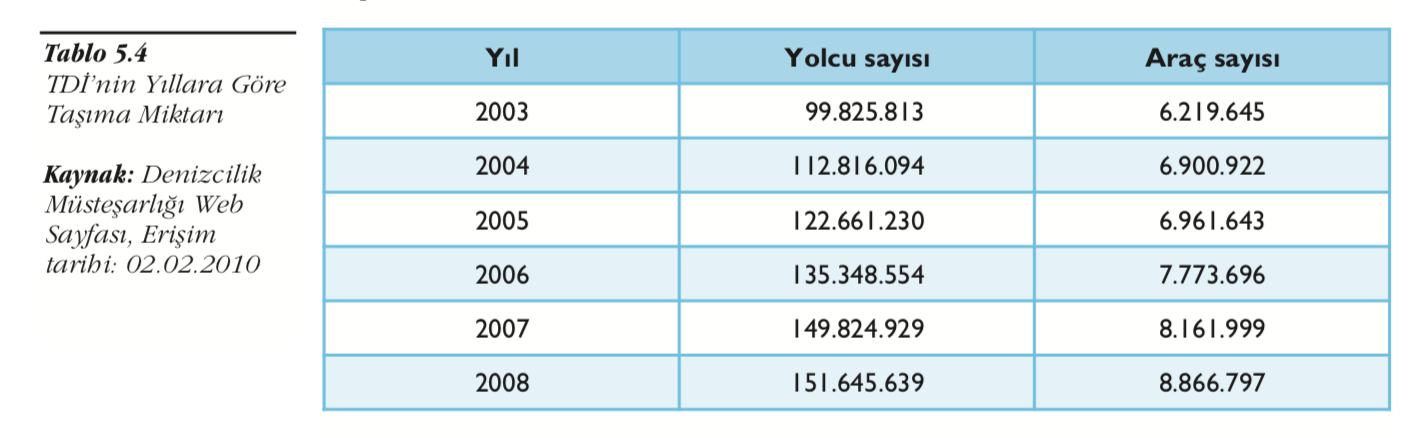 Türkiye denizcilik işletmeleri 2010 yılı verilerine göre ülkemizde 2008 yılı için deniyolu taşımacılığında yer alan yolcu sayısı yaklaşık nedir?