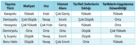 - Taşıma Hizmetinin Kalitesi'nden oluşmaktadır.