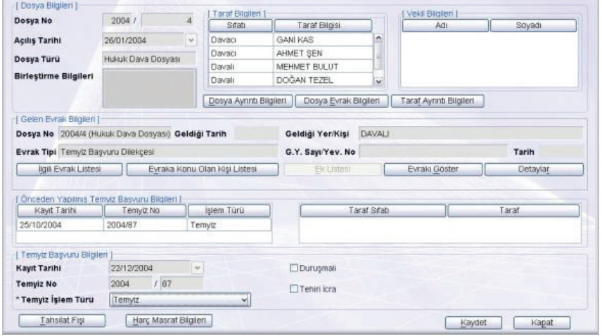 Dava dosyalarının ilgili mahkemelerle belirli kriterlere göre tevzi edilmesi işlemlerinin gerçekleştiği ekrana dava tevzi işlemi ekranı denilir.