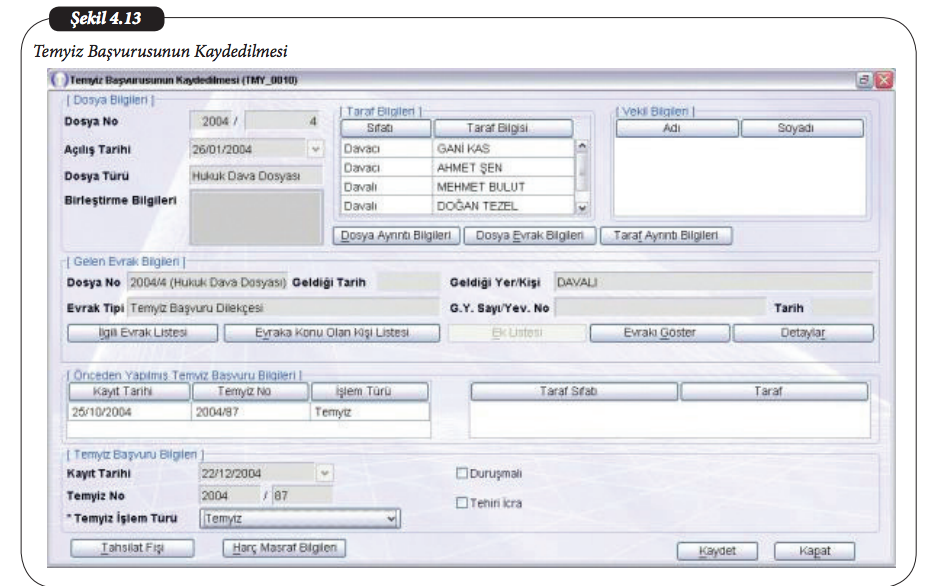 Aşağıda verilen ekranlardan hangisi taraf vekil işlemleri alt modülünde yer almamaktadır?