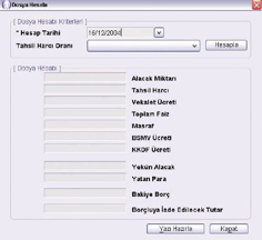 Maliye Bakanlığı tarafından belirlenen süre içerisinde parasal işlem yapılmamış dolayısıy- la paraları maliyeye devredilecek olan dosyaların listelendiği ekran zaman aşımı ekradır.