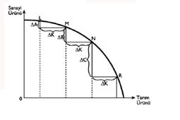 Aşağıdakilerden hangisi çoğalan maliyet koşulları altında oluşacak bir dönüşüm eğrisidir?