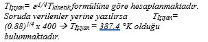 Kinetik sıcaklığı 400°K olan ve 0.88 yayım katsayısına sahip bir cisimden ışıyan sıcaklık kaç Kelvin’dir?