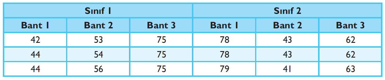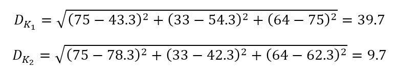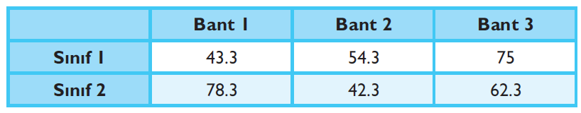 Üç bantlı [75 33 64] piksel ölçme vektörünün En Kısa Uzaklık yöntemine göre hangi sınıfa atandığını ve ilgili sınıf merkezine olan uzaklığını belirleyiniz.