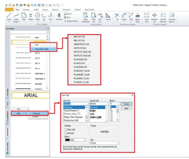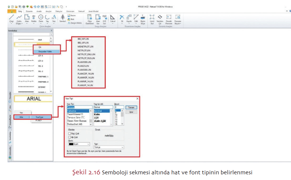 Semboloji sekmesi altında hat ve font tipinin belirlenmesi |