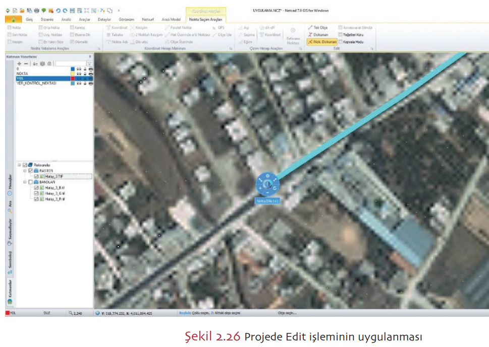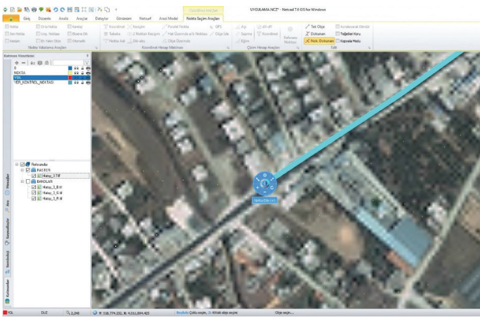 Proje ekranında gösterilen noktanın koordinat bilgilerine ulaşmak için tercih edilir.