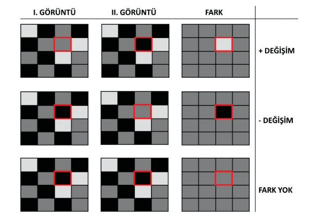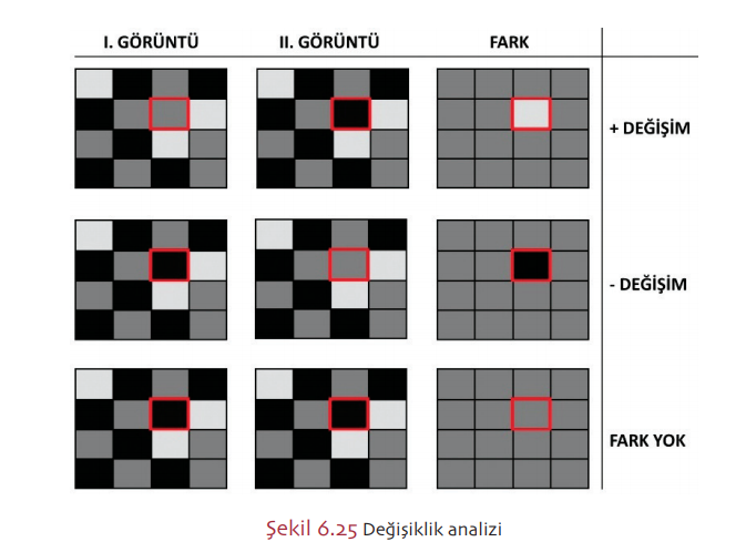 Değişiklik analizi gerçekleştirilen uydu fotoğrafında değişim alanına ilişkin vektör sonuçlara ulaşılması için hangileri uygulanmalıdır?