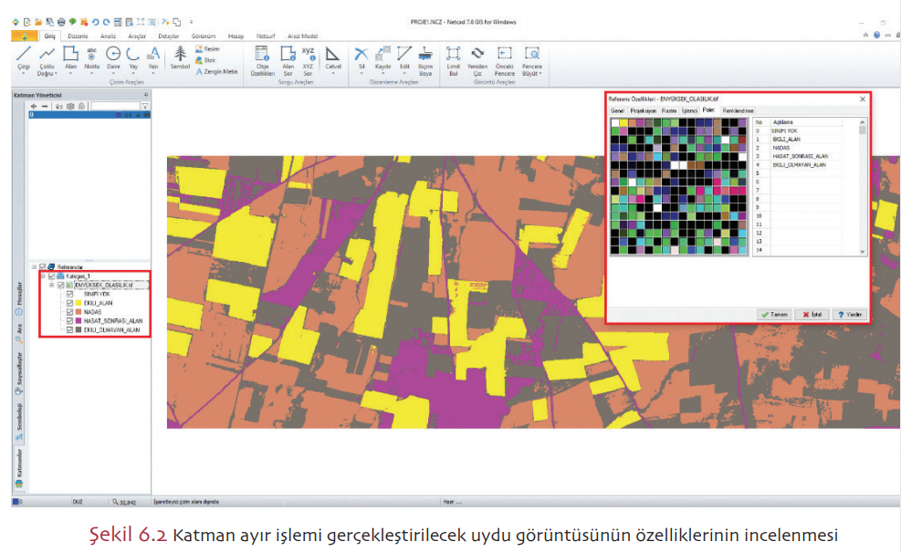 Katman ayır işlemi gerçekleştirilecek uydu görüntüsünün özelliklerinin incelenmesi |