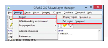 GRASS yazılımında bölge ayarlama (set region) sekmesinde aşağıdakilerden hangisi bulunmaktadır?