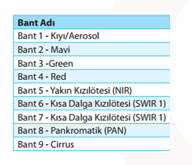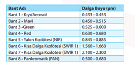 Yukarıdakilerden hangisi/hangileri Landsat 8 uydu görüntü aralıklarındandır?