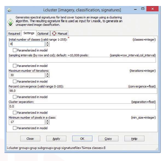 GRASS GIS 7.1 yazılımında kontrolsüz sınıflandırma modelinin üçüncü aşaması olan kümeleme işleminde i.cluster penceresinde bulunan ayarlar (settings) menüsündeki maksimum iterasyon sayısı sekmesindeki değer kaçtır?