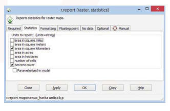 GRASS GIS 7.1 yazılımında kontrolsüz sınıflandırma modelinin son aşaması olan rapor oluşturma işleminde istatistik menüsünden aşağıdakilerden hangisi seçilir?