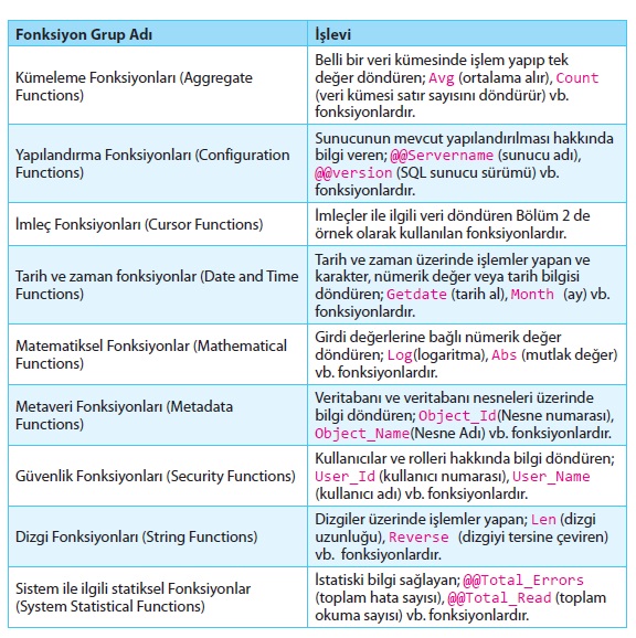 ‘Kullanıcılar ve rolleri hakkında bilgi döndüren; User_Id (kullanıcı numarası), User_Name (kullanıcı adı) vb. fonksiyonlardır. ’