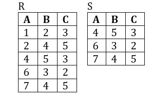 Aşağıdaki R tablosundan seçim yapılmış ve sonuç olarak S tablosu elde edilmiştir. Burada tablolara uygulanan cebirsel işlem nedir?