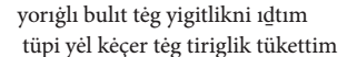 yörügli bulıt teg sükutligni ayıdtım tuttı yel keçer teg bir feleklig tükettim |