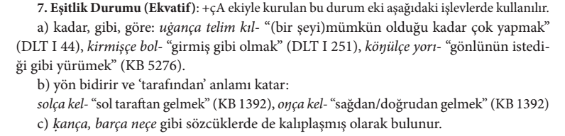 Metinde eşitlik durumu eki bulunmaz. Konuyla ilgili olarak 4. Üniteden s. 43’ü okuyunuz.