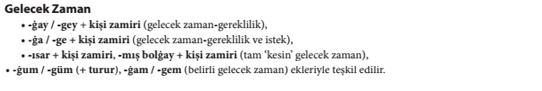 Hangisi Harezm Türkçesinde kullanılan gelecek zaman eklerinden değildir?