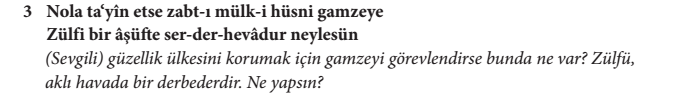 (Sevgilinin saçları) güzellik ülkesinin korumak için ne yapmalıdır? Acaba koruma görevini gamzeye mi vermelidir? Çünkü onun asıl korucusu olması gereken zülfü tam bir derbederdir. |