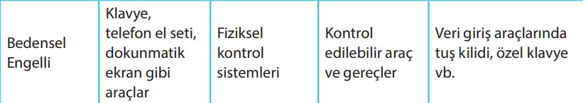 Seçeneklerden hangisi engellilerin bilişim iletişim teknolojilerine erişimi için destek teknolojilerden bedensel engelliler için sunulabilecek çözümlerden birisidir?