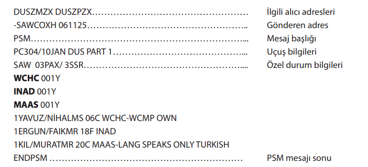 MEDA (Medical Case): Sağlık raporu ile seyahat edebilen yolcular için kullanılan koddur.